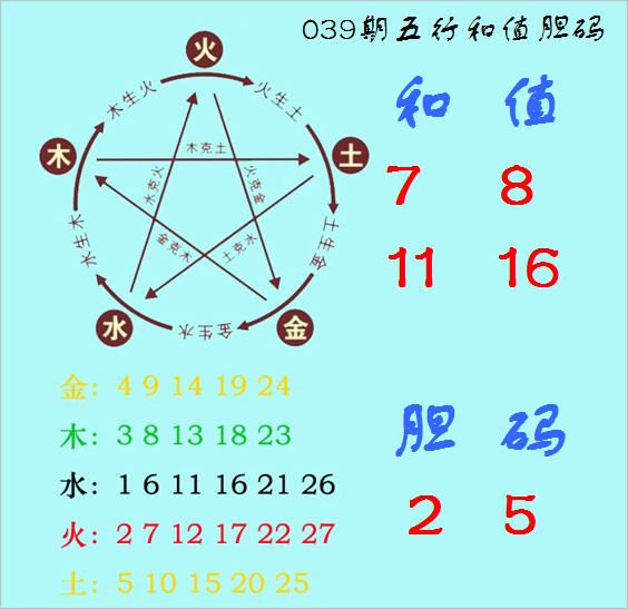 庄闲和 福彩3D第2026039期神算天五行和值胆码图