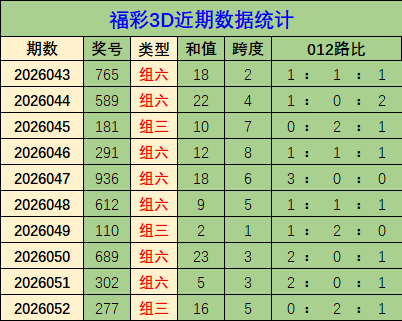 类型分析:上期开出中奖号是277,开出组三类型,最近十期开出组六类型奖7期,区分开出765、589、291、936、612、689、302。开出组三类型3期,开出181、110、277,概述分析,本期展望开出组六号码机率较大。